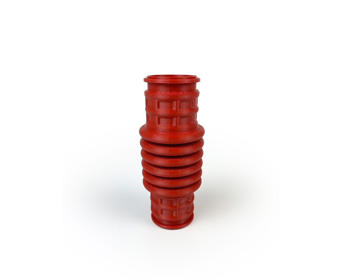 FDM TPU 92A bietet in Verbindung mit wasserlöslichem Stützmaterial die Möglichkeit, auch komplexe Geometrien kostengünstig auf den 3D-Druckern der Stratasys F123-Serie zu fertigen. Es ist eine unschlagbare Alternative zu anderen TPU-3D-Drucktechnologien und macht teure und zeitaufwändige Form- oder Gießverfahren für die Herstellung von Elastomerteilen überflüssig.